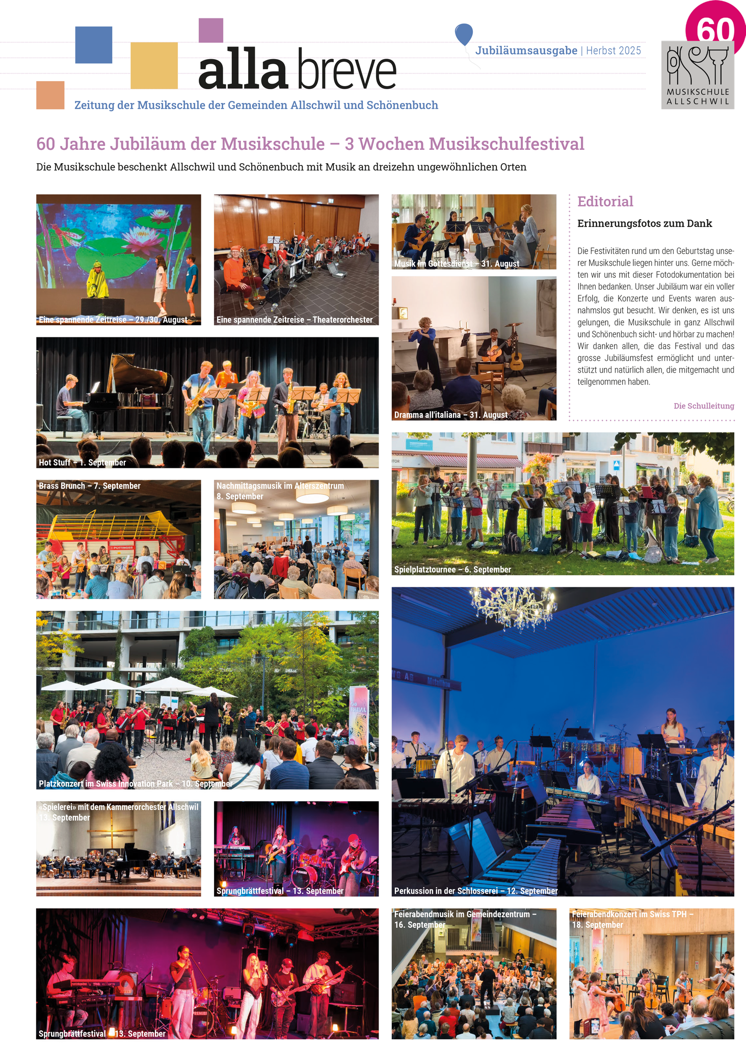 Hier finden Sie die aktuelle Ausgabe unserer Musikschulzeitung "alla breve".